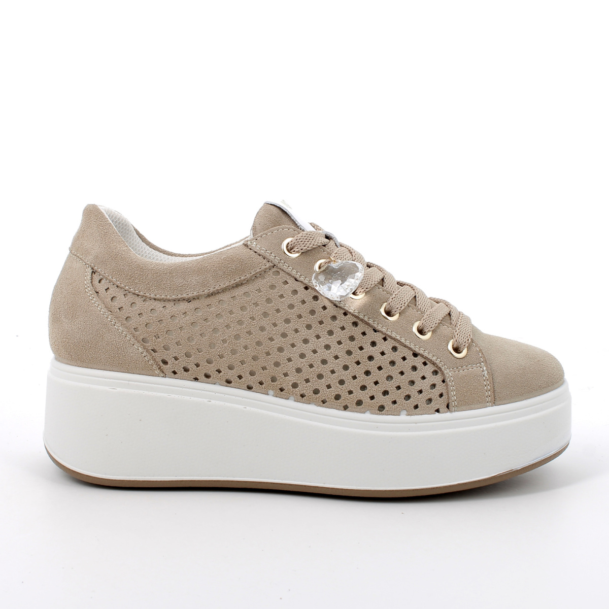 У кроссовкок лаконичный вид и минималистичный силуэт, которые легко дополнят любой образ. Анотомическая стелька не только комфортна, но и обеспечивает воздухопроницаемость и гигиену. Так же и по бокам кросовок есть отверстия предназначены для лучшей воздухопроницаемости. На шнурках стильный аксессуар в виде сердца.